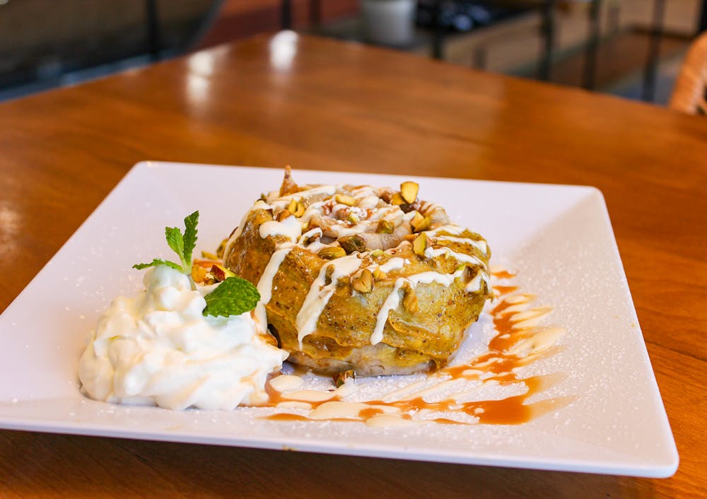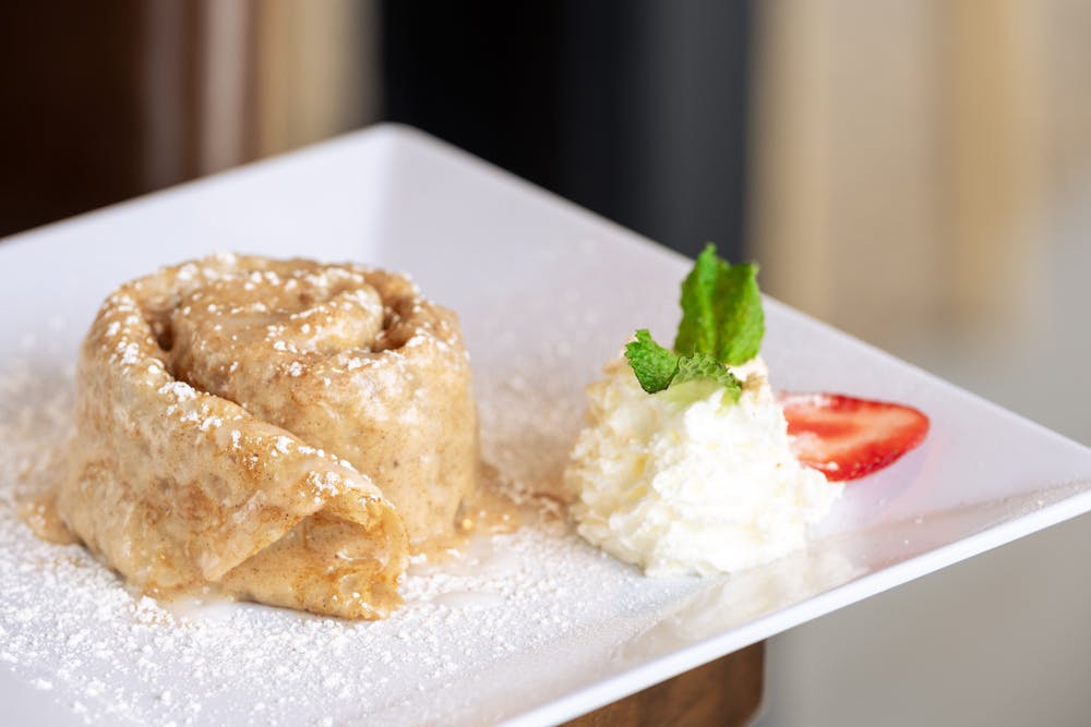 All the warmth and sweetness of a classic cinnamon roll, wrapped in our signature crepe. Cinnamon butter cream and a sprinkle of cinnamon sugar make this crepe a cozy, comforting treat perfect any time of day.