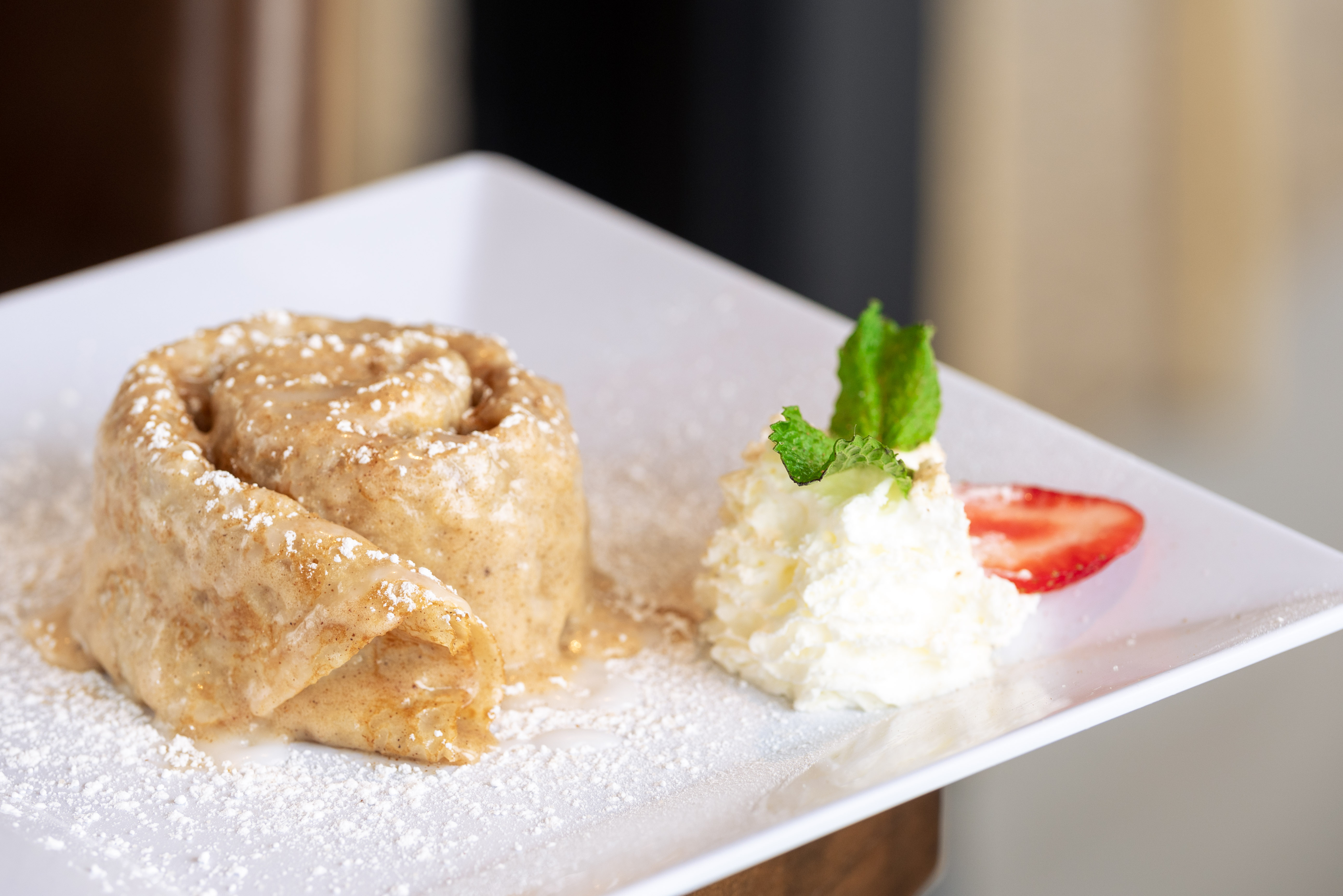 All the warmth and sweetness of a classic cinnamon roll, wrapped in our signature crepe. Cinnamon butter cream and a sprinkle of cinnamon sugar make this crepe a cozy, comforting treat perfect any time of day.